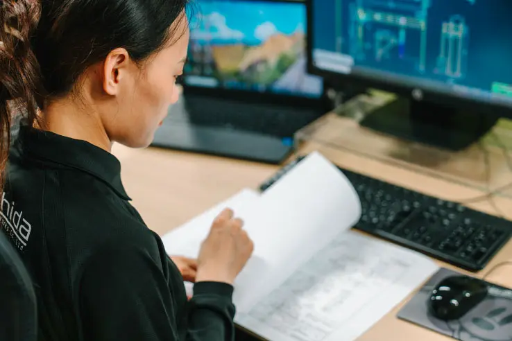 設計部門で設計業務を担当しています。主に先輩の補助として、図面の修正を行っています。