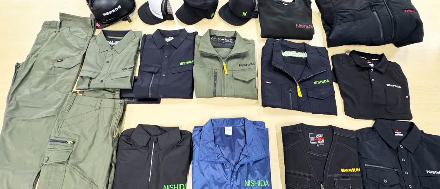 西田製作所では、現場での安全性と機能性を備えつつ、カジュアルさも感じられる制服を現場の声を参考に採用しています。「工場=無骨」なイメージを良い意味で裏切る、スタイリッシュで快適な装い。働く自分の姿を、ぜひ想像してみてください。