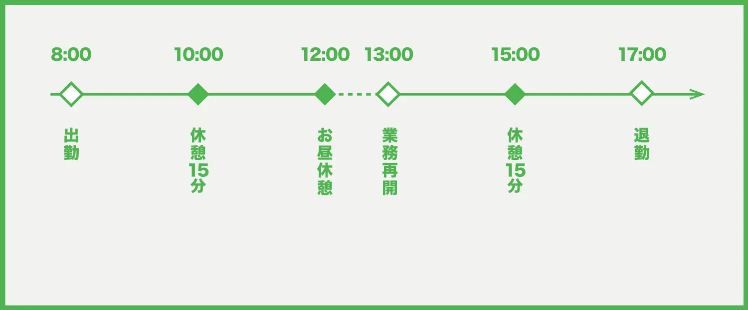 A. 勤務時間は平日の8:00〜17:00となっています。休憩時間等は規定に準じます。